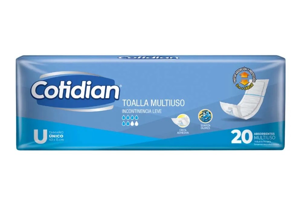es ideal para pérdidas de orina leves y uso post parto. Ofrece control de olores, y tiene cinta adhesiva y tecnología Block Gel, que retiene los líquidos en el interior.